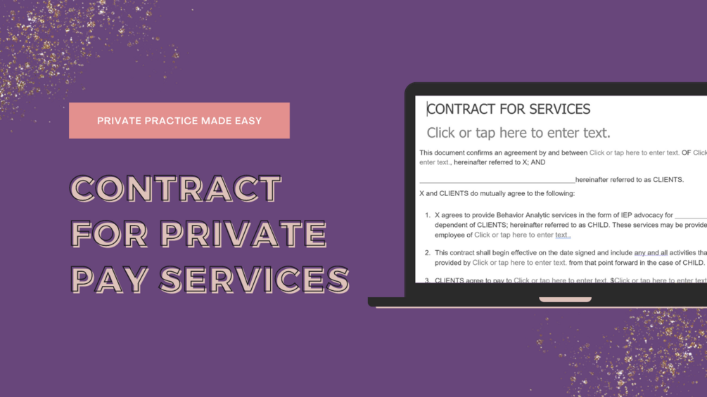 This is an example of a private pay contract that I have used. It is designed to provide accurate information with the understanding that the author is not rendering legal, accounting, or other professional advice. The service of a professional in your state should be consulted.